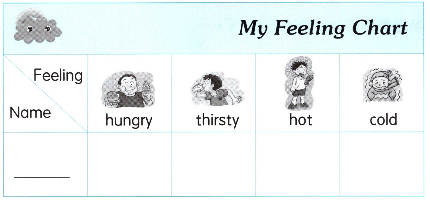 |Feeling|A hungry|B thirsty|C hot|D cold|