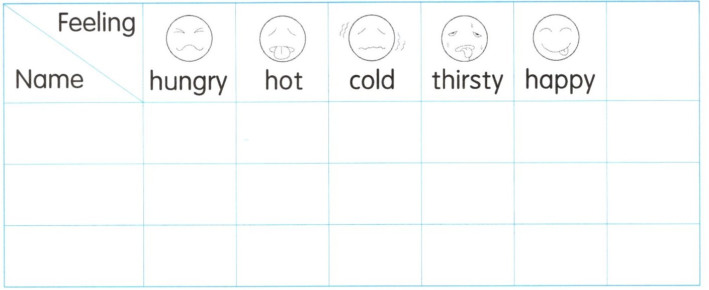 心情驿站的老师正在开展情绪调查活动,请你采访你的同学们,并完成下方表格吧。