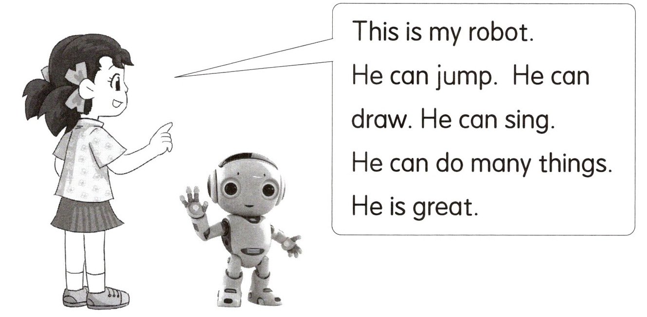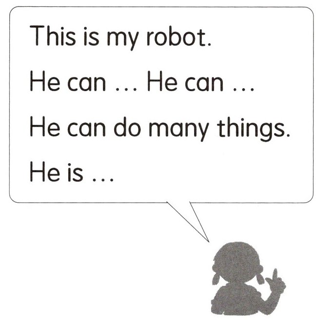 机器人才艺展示活动开始啦!Sally带来了她的机器人。你也设计一个机器人,一起来参加才艺展示吧!画一画,并向大家介绍。