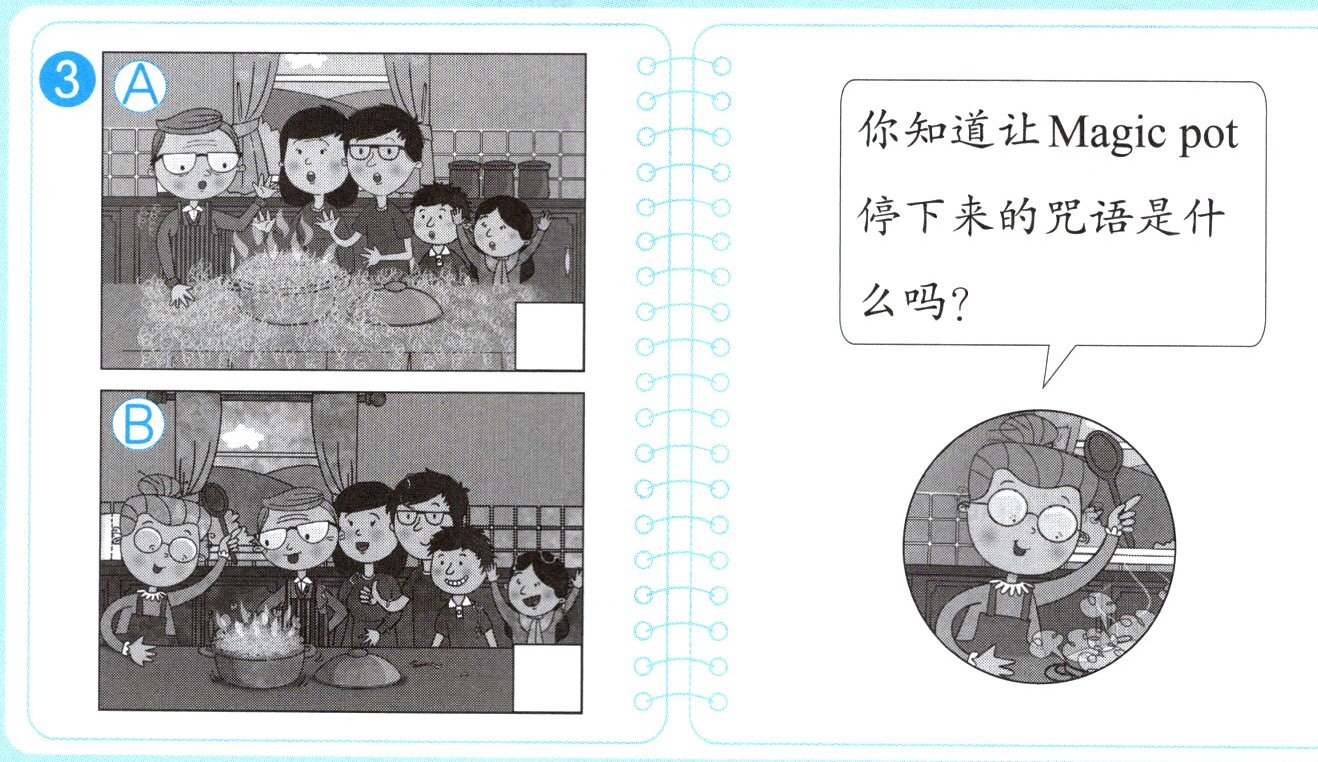 在“家庭时刻”照片展上,Betty准备介绍Magic pot的故事。听一听她的描述,勾出正确的配图。