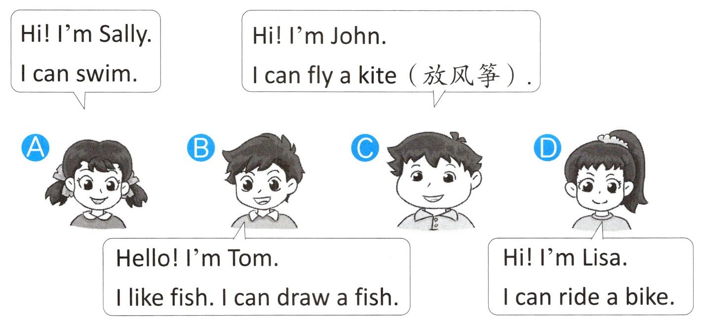 Step 2 Look, circle and colour(观察图片,圈出你所看到的字母,然后给字母涂色)