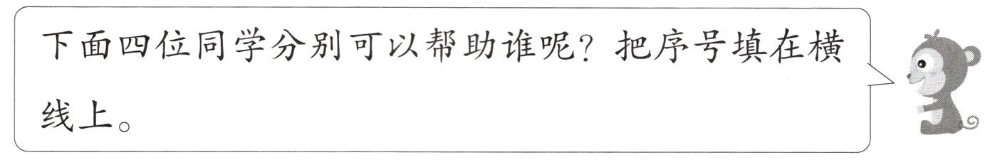 下面四位同学分别可以帮助谁呢?把序号填在横线上。