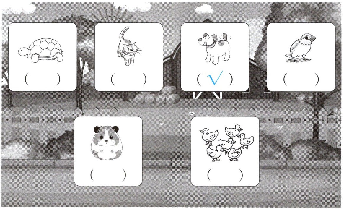 学校组织大家去开心农场参观。Chenchen和同学们正在谈论看到的动物。听一听,勾出他们谈论的动物。