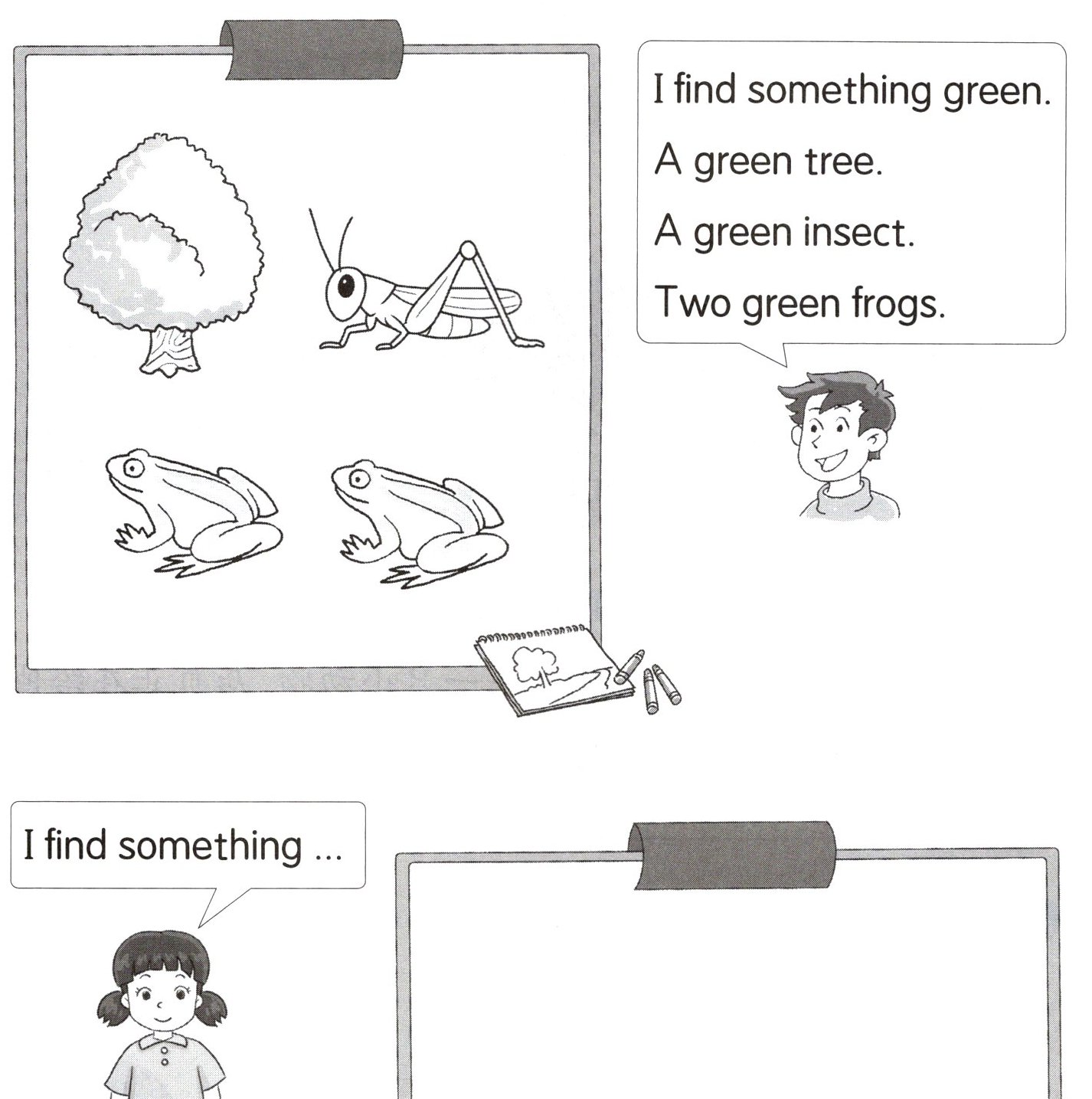 Lele最喜欢绿色,他在公园里找到了很多绿色的事物并画了下来。你最喜欢什么颜色呢?到公园里找一找、画一画、说一说吧。