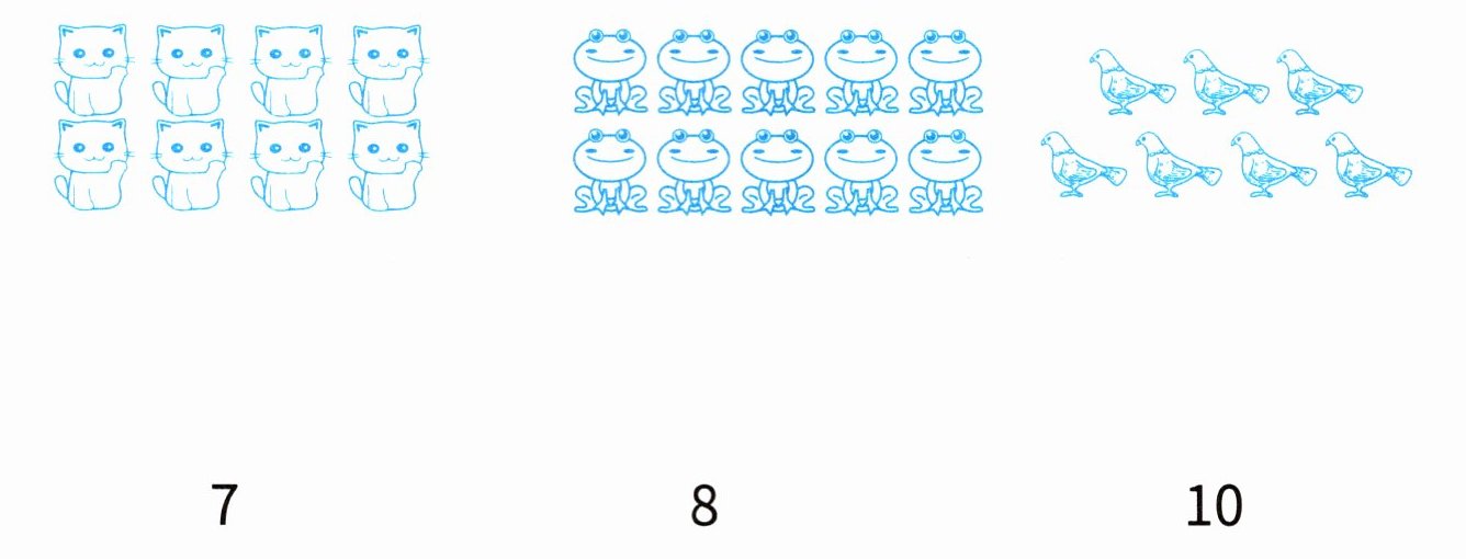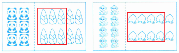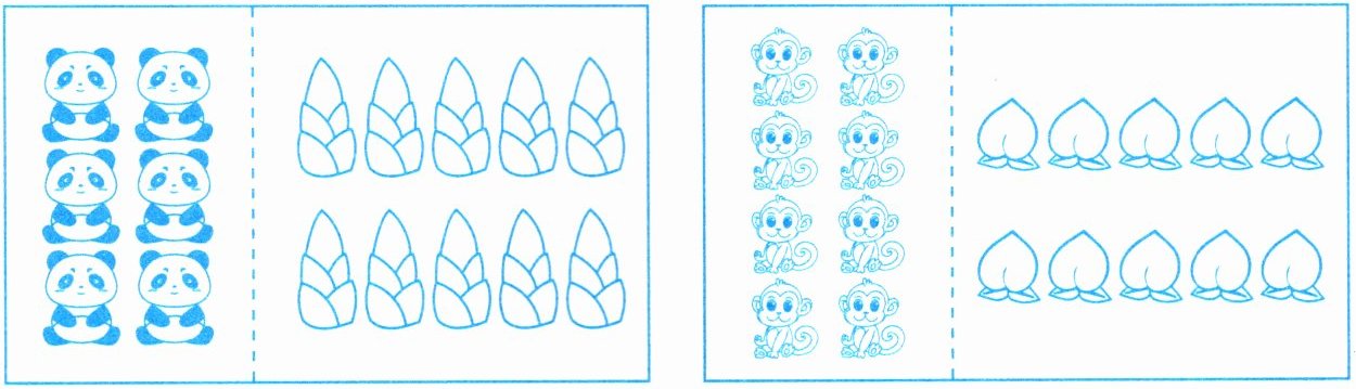 3. 数一数,圈一圈。(分别圈出与动物数量一样多的食物)