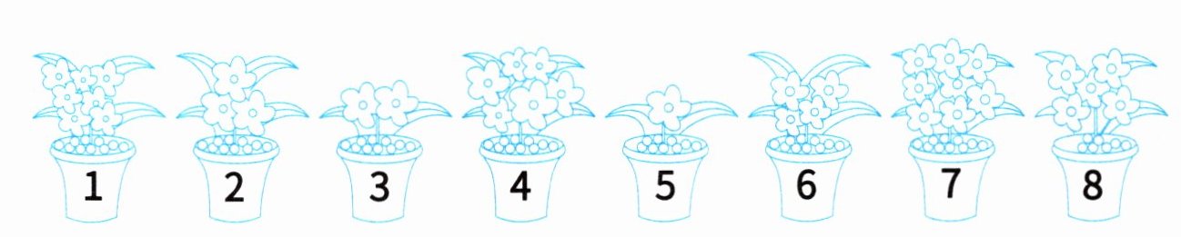 第 1 盆有 7 朵花,第( )盆有 6 朵花,第( )盆有 8 朵花。