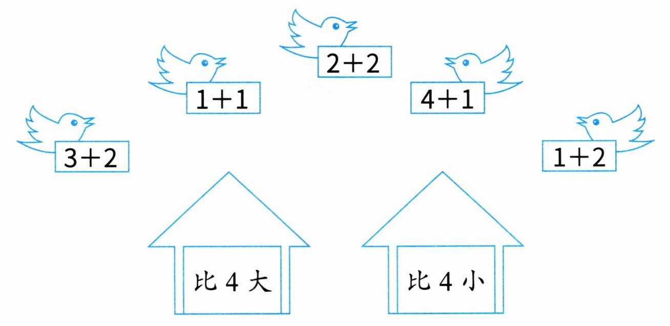 比4小:$1 + 1$,$1 + 2$。