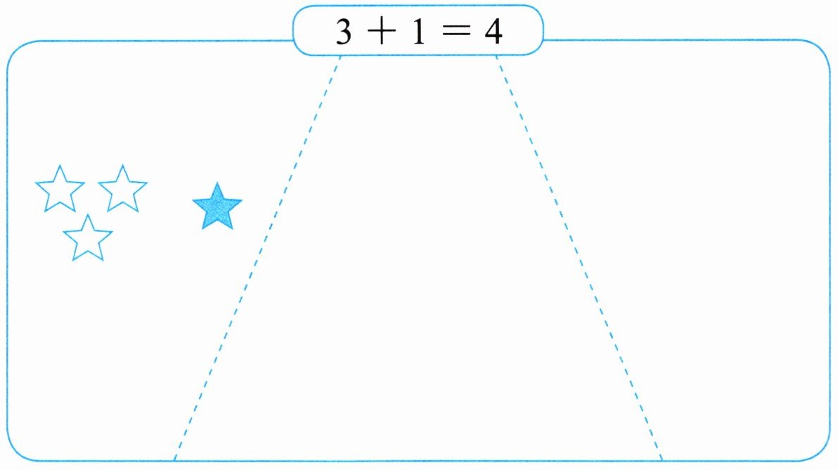 2. 用$3 + 1 = 4$能讲什么数学故事?说一说,画一画。