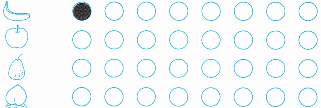 (1) 数一数上图中的水果分别有几个,再照样子在下面的○中涂色。