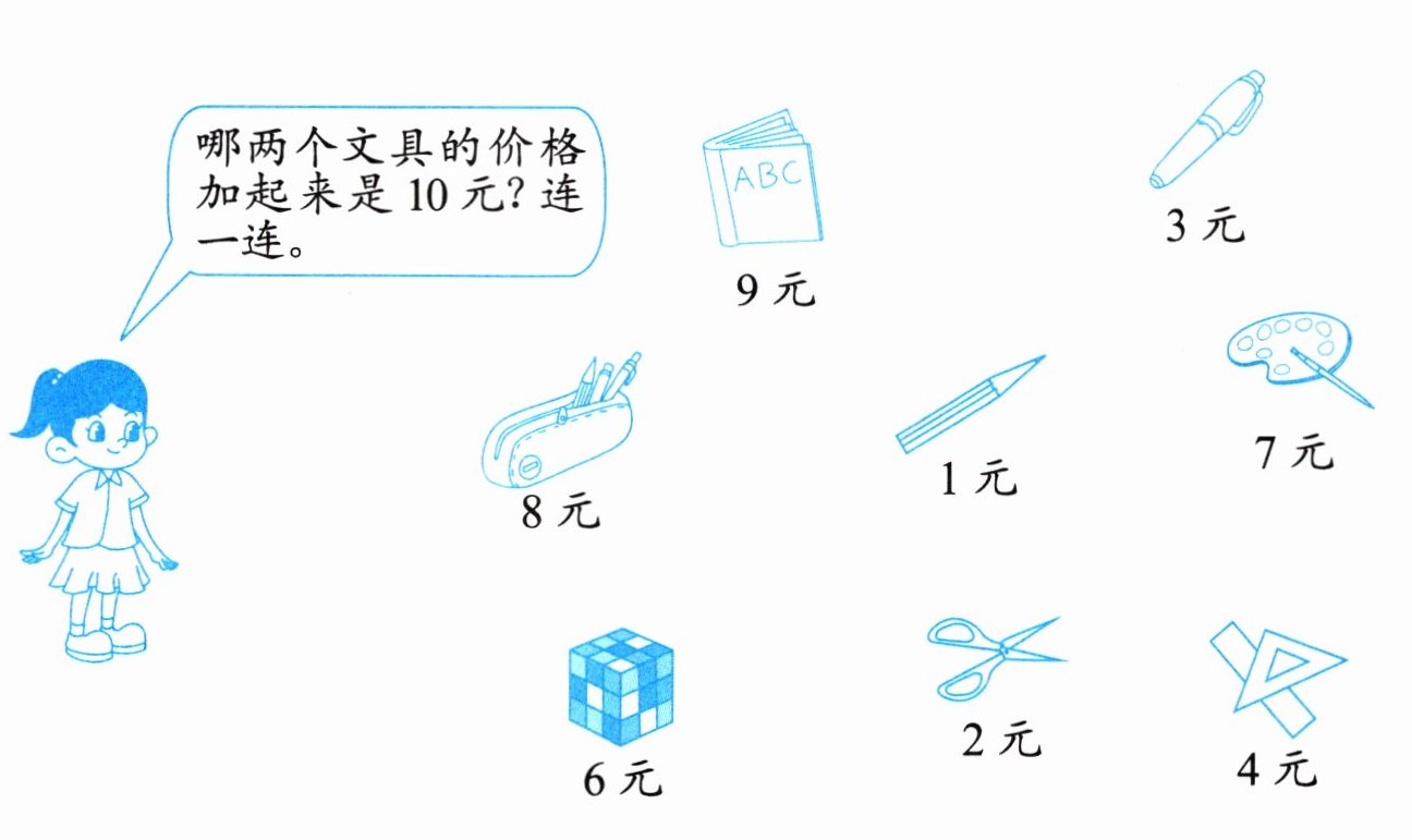 9元连1元,8元连2元,7元连3元,6元连4元。