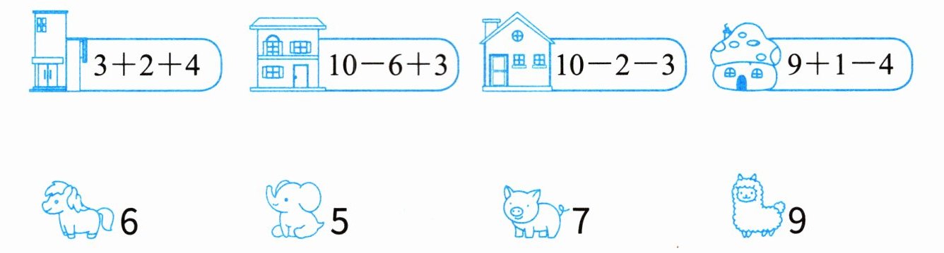$2 + 3 - 5$ $◯$ $0$ $\quad 6 - 5 + 3$ $◯$ $2$ $\quad 9 - 9 + 6$ $◯$ $8$