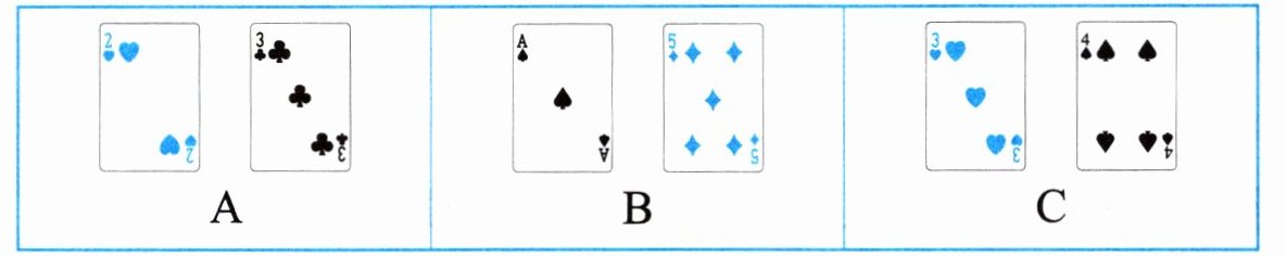 1. 下面三组扑克牌,( )组牌上点数之和最大。(A 看作 1)