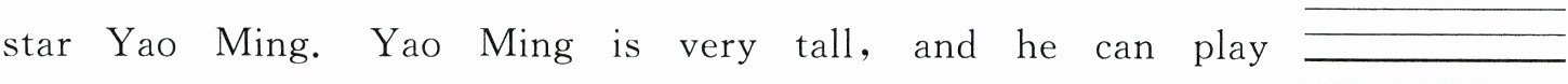on the wall—my favourite star Yao Ming. Yao Ming is very tall, and he can play basketball