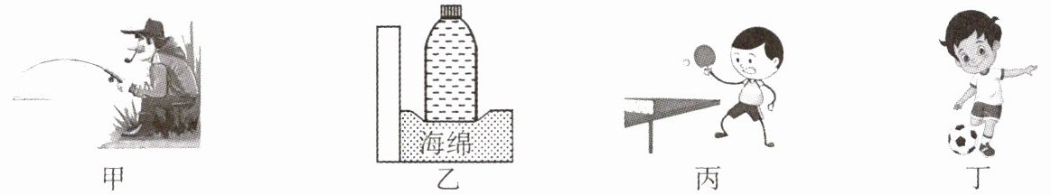 B.图乙瓶对海绵的压力使瓶子发生形变