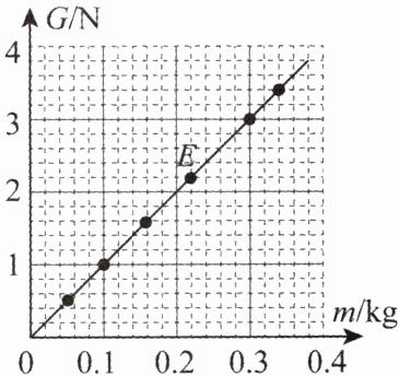 D.根据数据点E可知:质量为0.21kg的物体受到的重力为2.1N