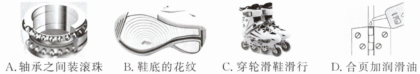 【跟踪练习17】 如图所示的四个实例中,属于增大摩擦的是(