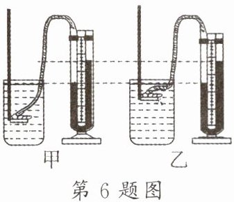 6. 如图,将同一液体压强计的金属盒先后放入甲、乙两种液体中,这两种液体的密度大小关系是(