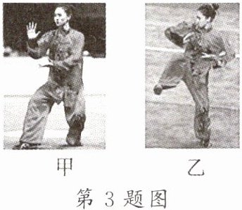 3. 中国女子武术运动员童心在杭州亚运会武术女子太极拳太极剑全能决赛中夺得金牌。如图所示是童心在比赛过程中的两种姿态,她对地面压力和压强分别为F_甲和F_乙、p_甲和p_乙,则下列关系正确的是(