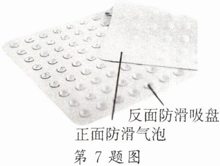 7. 如图,浴室防滑垫正面有防滑气泡,反面有防滑吸盘,正面是通过增大接触面