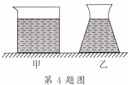 4. 如图,水平桌面上放着底面积相等、质量相同的甲、乙两容器,分别装有体积不同的同种液体且深度相同,两容器底部受到的液体压力分别是F_甲、F_乙,两容器对桌面的压强分别用p_甲、p_乙表示,则(
