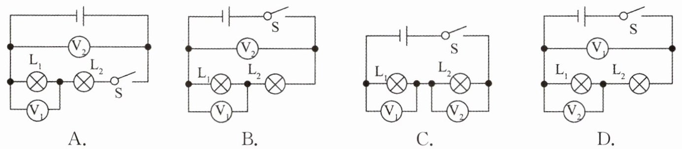 (2)测出$L_1$两端的电压后,小明断开开关,准备拆下电压表,改装在$B$、$C$之间。小聪认为小明的操作太麻烦,只需将与$A$点相连的导线改接到$C$点即可。小聪的办法是否正确?为什么?答: