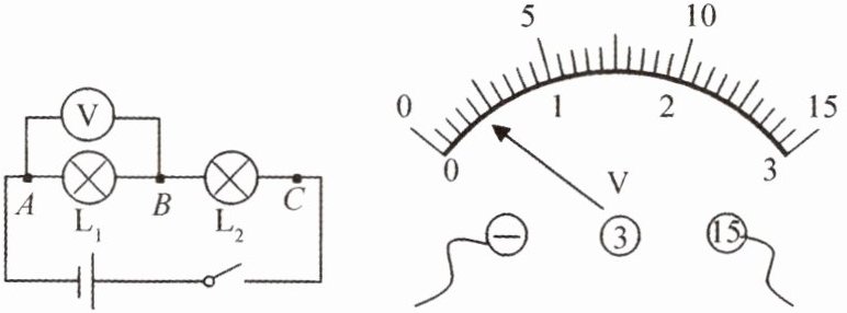 ,再重做实验。(2)测出$L_1$两端的电压后,小明断开开关,准备拆下电压表,改装在$B$、$C$之间。小聪认为小明的操作太麻烦,只需将与$A$点相连的导线改接到$C$点即可。小聪的办法是否正确?为什么?答: