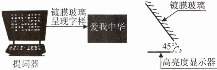 【跟踪练习3】提词器由一个高亮度显示器和一块与其成45°角的专用镀膜玻璃组成,镀膜玻璃将显示器上的文稿内容反射到演讲者前方。如图,当演讲者前方呈现爱我中华四个字时,他直接看显示器会看到(