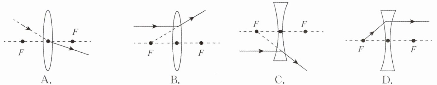 2. 如图所示,若F是透镜的焦点,则以下光路图正确的是(