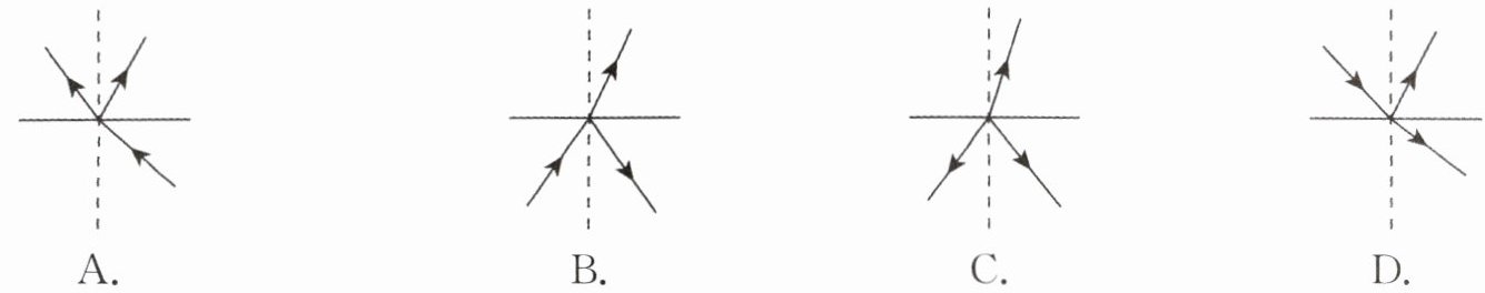 6. 小华实验课上画了几幅光的反射、折射的光路图,以下光路图正确的是(
