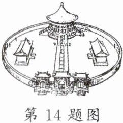 14. 天坛公园有一个回音壁,回音壁的中心有个三音石,如图所示站在上面拍手可能会听到三次回声,充分体现了我国劳动人民的聪明才智。听到的第三次声音和原声相比发生变化的是(
