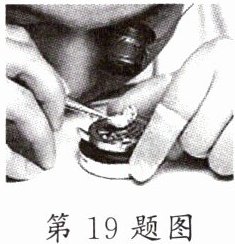 19. 工匠师傅维护精密仪表时,在眼睛前戴一个凸透镜,如图。已知该凸透镜的焦距为8cm,则仪表到凸透镜中心的距离应