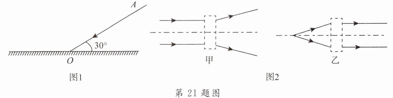 (2)在图2所示的甲、乙中,根据光线通过透镜前后的方向,分别在虚框内画出适当的透镜。