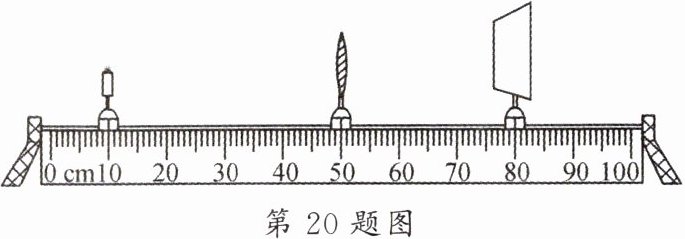 20. 实验室利用光具座研究凸透镜成像的规律,当三个元件移动到如图所示的位置时,光屏上出现了清晰的像,从图中读出物距为