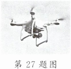 27. 2024年4月26日,成都世界园艺博览会如期盛装启幕。花开天府,气象万千,来自世界五大洲的奇花异草竞相绽放,令游客大饱眼福。园林花卉可以通过无人机进行维护,图中的无人机正在给田园花卉喷洒农药。已知无人机空机状态质量为4kg,停放在水平地面上时与地面的总接触面积为80cm²(g取10N/kg)。
