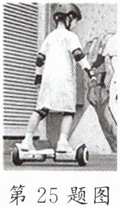 25. 如图所示是某种型号双轮电动平衡车,小红驾驶平衡车在平直的路面上匀速行驶,人和平街车的总质量为50kg,行驶时所受的阻力为总重的0.2倍,对地面的压强是2×10⁵Pa,平衡车在平直的路面上匀速行驶的过程中。求(g取10N/kg):