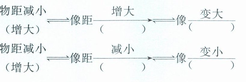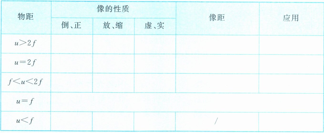 要点六 1.倒 缩小 实 f<u<2f 照相机 倒 等大 实 u=2f 测焦距 倒 放大 实 v>2f 幻灯机、投影仪 不成像 正 放大 虚 放大镜 虚实 大小 2.实 虚