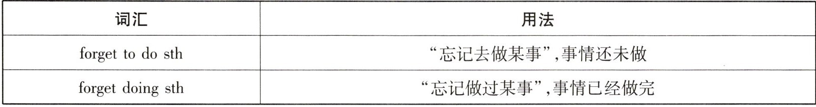 forget 动词,意为“忘记;遗忘”,其过去式是 forgot。