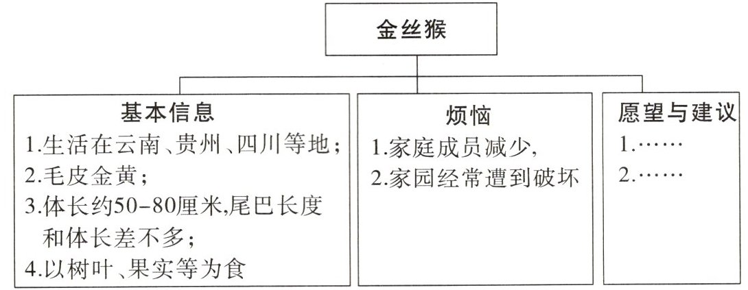 Most of my friends come from Yunnan,Guizhou,and Sichuan. Our fur is golden,and we are about 50-80 centimetres in length,with tails almost as long as our bodies. We eat leaves,fruits and so on. But now,our family is getting smaller,because people cut down many trees,and we are losing our homes. I wish we could live without fear. Please help us protect our homes. Also,tell others about the importance of protecting all animals. Protecting wildlife means caring for human beings themselves.