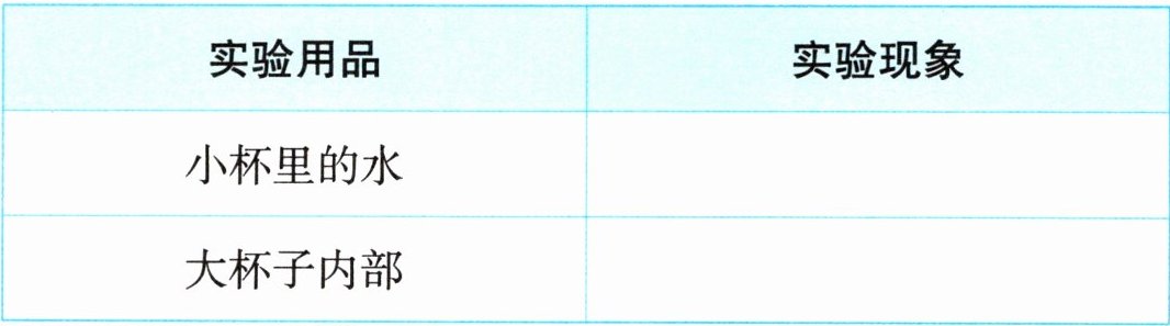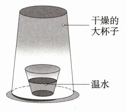 3. 如图所示,取一小杯温水,用干燥透明的大杯子罩住它,请预测实验现象。