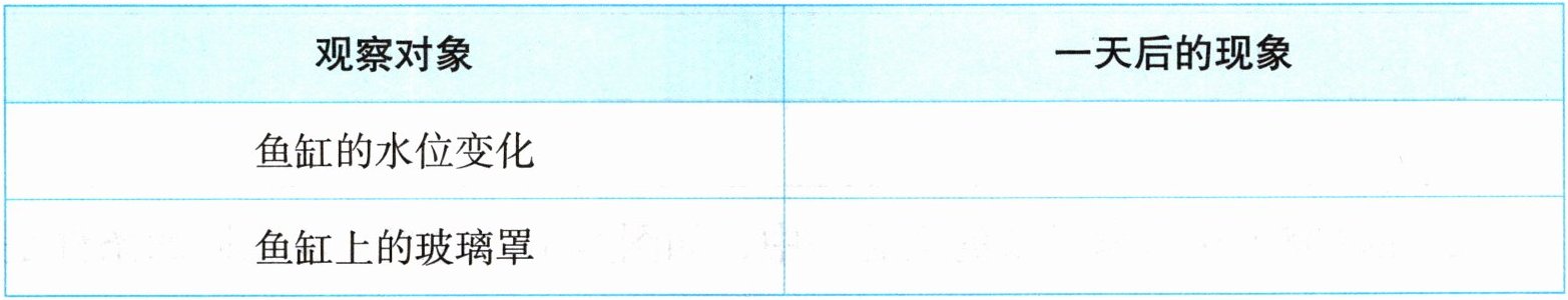 (3)观察鱼缸和玻璃罩上的现象,将结果记录在下面的观察记录单上。