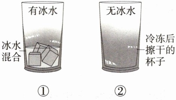 。实验的现象是两个玻璃杯外壁都出现了水珠,这说明玻璃杯外壁的水珠与玻璃杯内的冰水没有