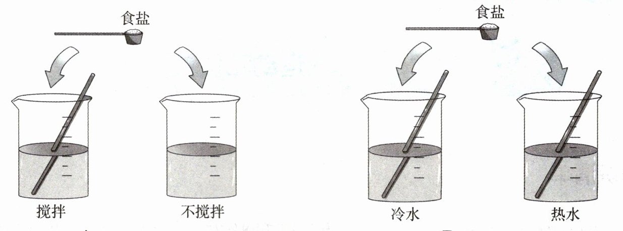 1.B 2.探究准备:两份等量的食盐、一杯热水、一杯冷水、两个250毫升的烧杯、两个搅拌棒。 实验步骤:
