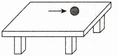 3. 用手将小球沿着桌面向右推出。请你观察小球在桌面滚动时和冲出桌面后的运动路线,在右图中把它画出来。