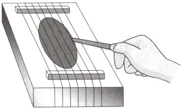 2. 用双面胶将木条分别固定在椭圆形两端。