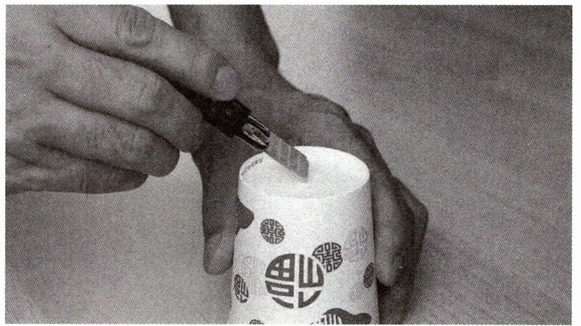 步骤一:用美工刀在纸杯底部戳个小孔。