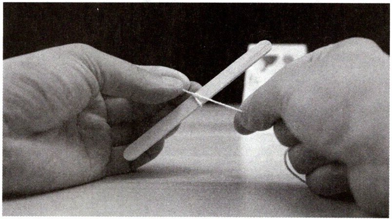 步骤二:将细绳的一端系在雪糕棒的中间部位。