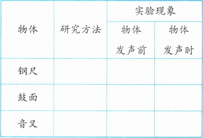 2. 物体是怎样发出声音的?观察正在发声的物体,请将你观察到的现象记录在下表中,并完成下面的实验发现。