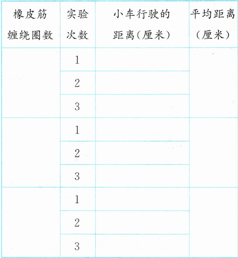 通过观察实验,我发现:橡皮筋缠绕一圈和缠绕多圈相比,________时橡皮筋产生的力更大一些,________时橡皮筋产生的力作用在小车上的时间更长,________时小车行驶的距离更远。