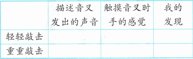 1. 用橡皮槌以不同的方式敲击音叉,请将你观察到的实验现象记录在下表中。