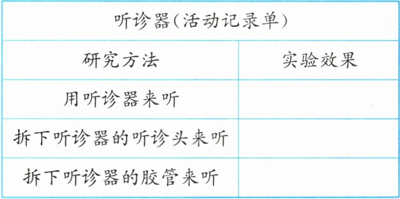 探究问题:通过本课的学习,知道了我们是怎样听到声音的,那你能通过实验来探究分析听诊器的听诊头和胶管各自的作用吗?